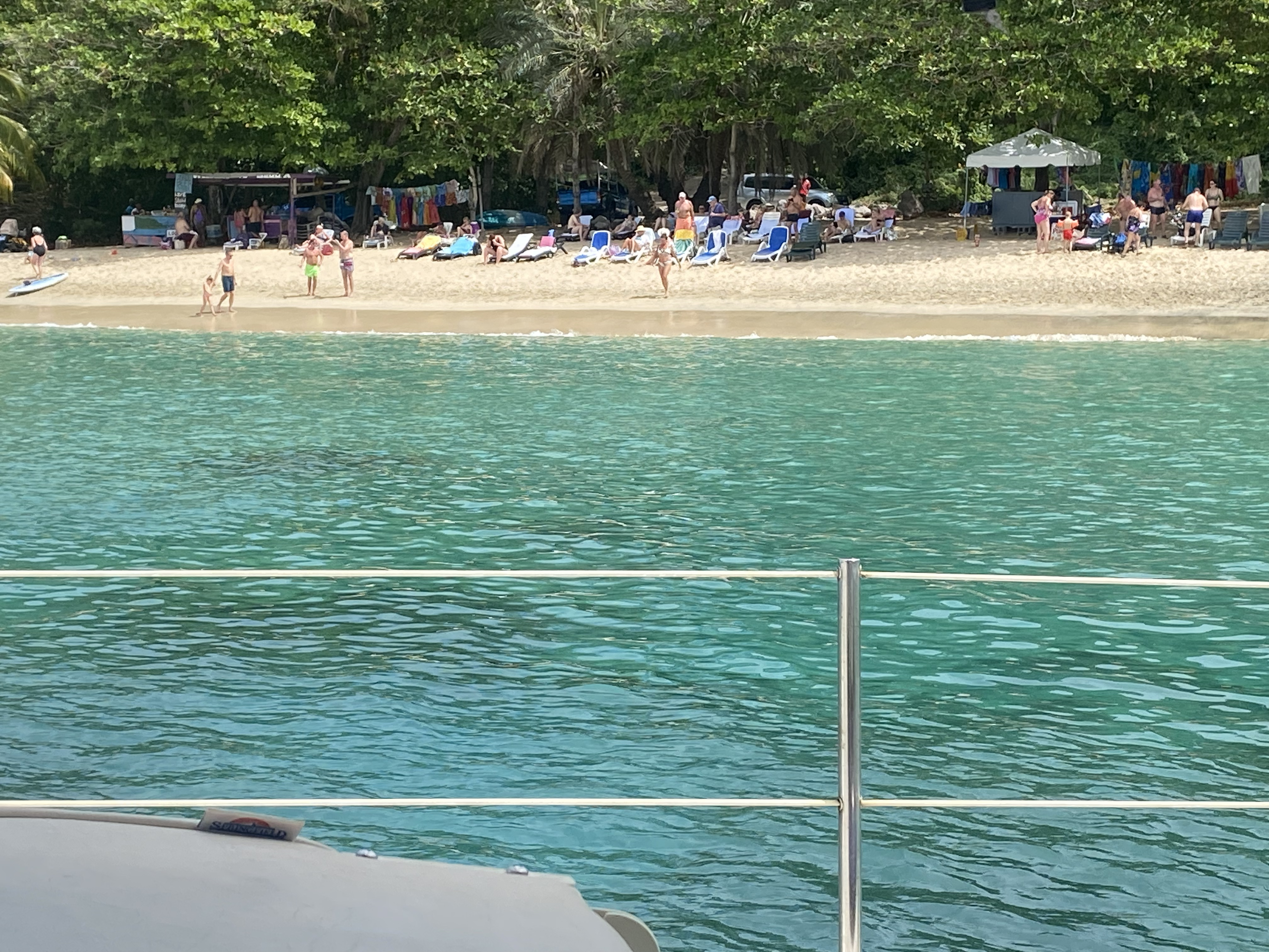 Sunday morning, as the charter boats were leaving the bay and the top-notch positions near the beach became free, we made our move to anchor closer to the beach. Just in the nick of time before the next fleet of charter boats came barreling into the anchorage, we found the sweet spot for the anchor in the sand, and we haven’t moved since then. thirteen days in total and today will make fourteen.