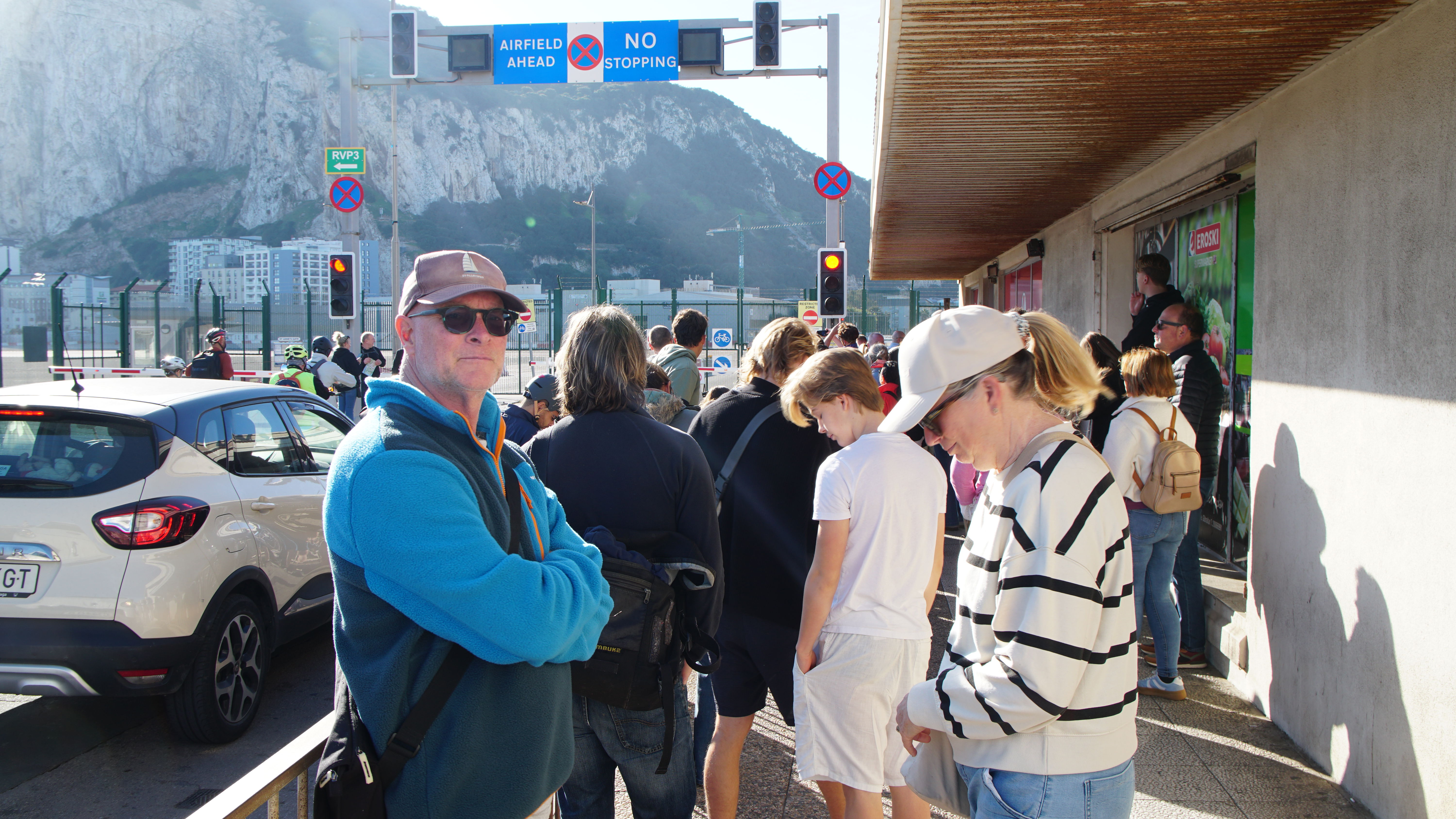 The border between Spain and Gibraltar is located just before the airport and airstrip and to cross to Gibraltar you go through a passport check. There are cars, pushbikes, scooters and walkers waiting to cross the border. Once through immigration you can walk to the airport or across the airstrip to Gibraltar. There is a big set of gates stopping crowds from crossing at any inopportune times eg while a Jetstar flight is taxing down the runway. That would put a dampener on your day.