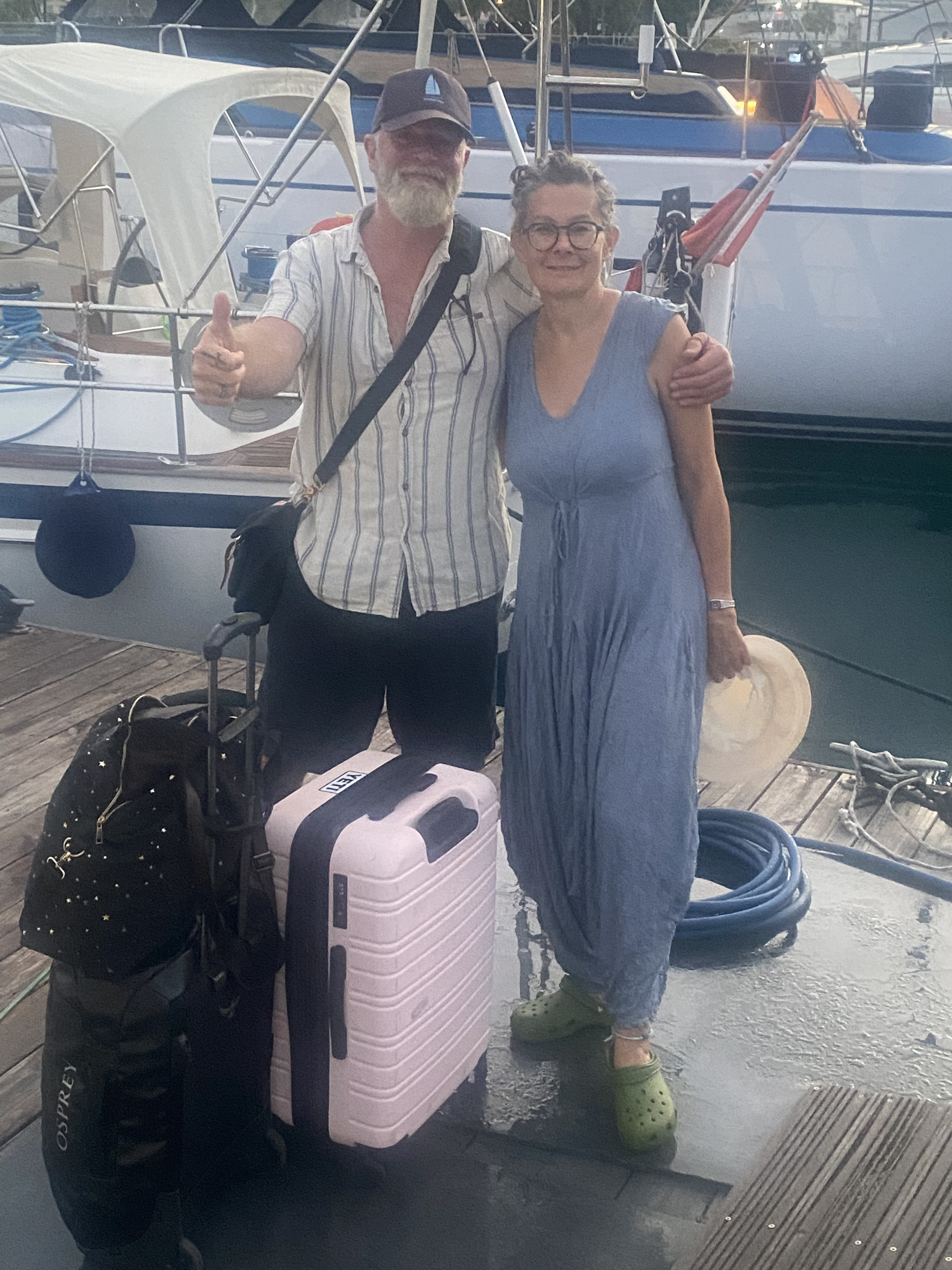 Phantomas and crew finished the crossing on Sunday the 11th of January and tied up in the marina around 3.30pm, so the timing was perfect. My flight was due into Grenada around 10pm. As you can imagine there were a number of refreshing beverages had in the marina bar and restaurant between the crew. I actually had no expectation that I would be met at the airport so upon walking out of the airport who should I see but a very, and I mean very, merry husband waiting for me. I was very surprised that he was there. I later heard the story of Tim and Cam organising with a girl working at the marina bar to book a taxi for Tony to meet me at the airport. I think they must have poured him into the taxi and told the taxi driver to not lose him. It was great to see him after waving him goodbye in Gibraltar weeks before.