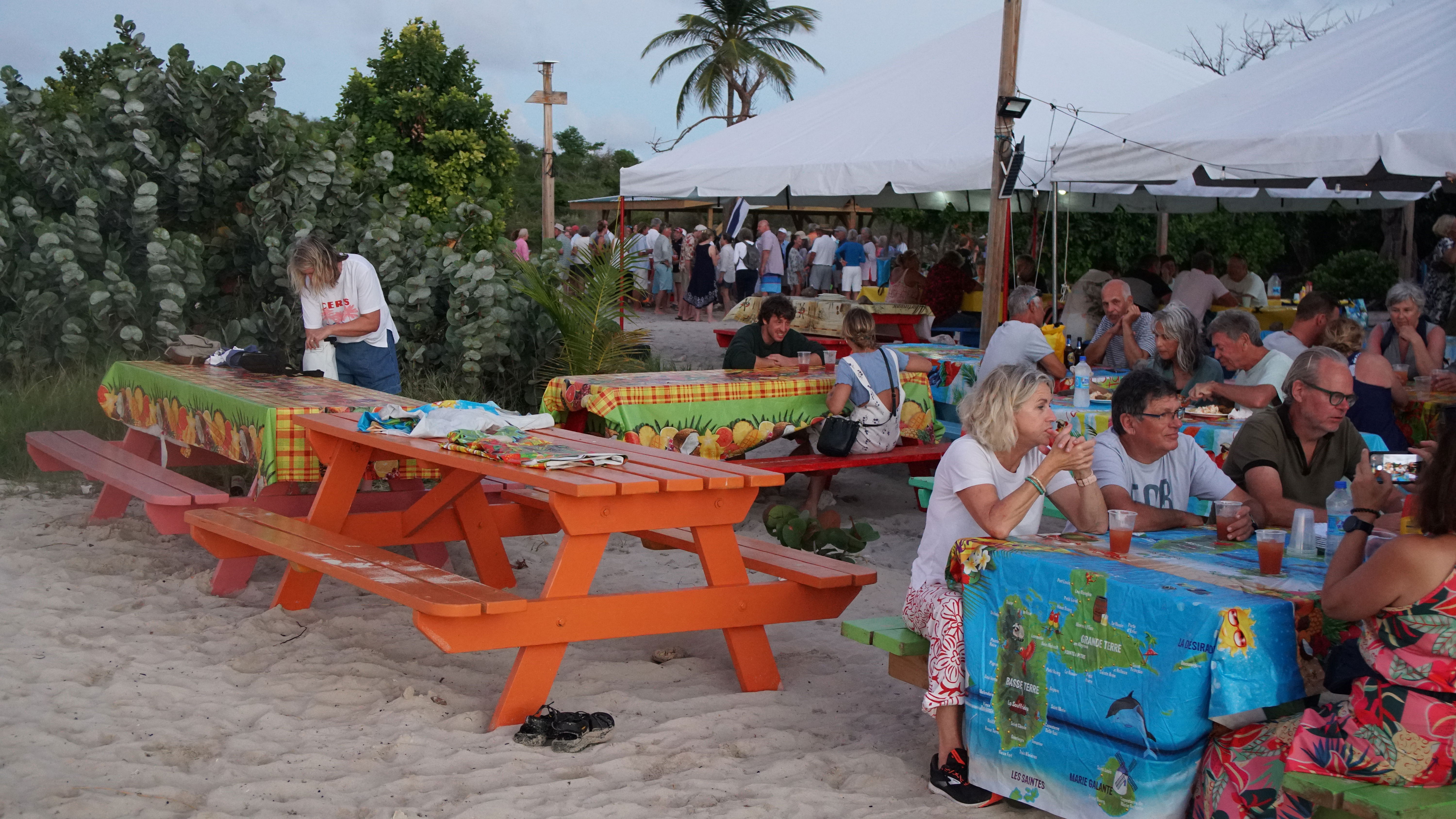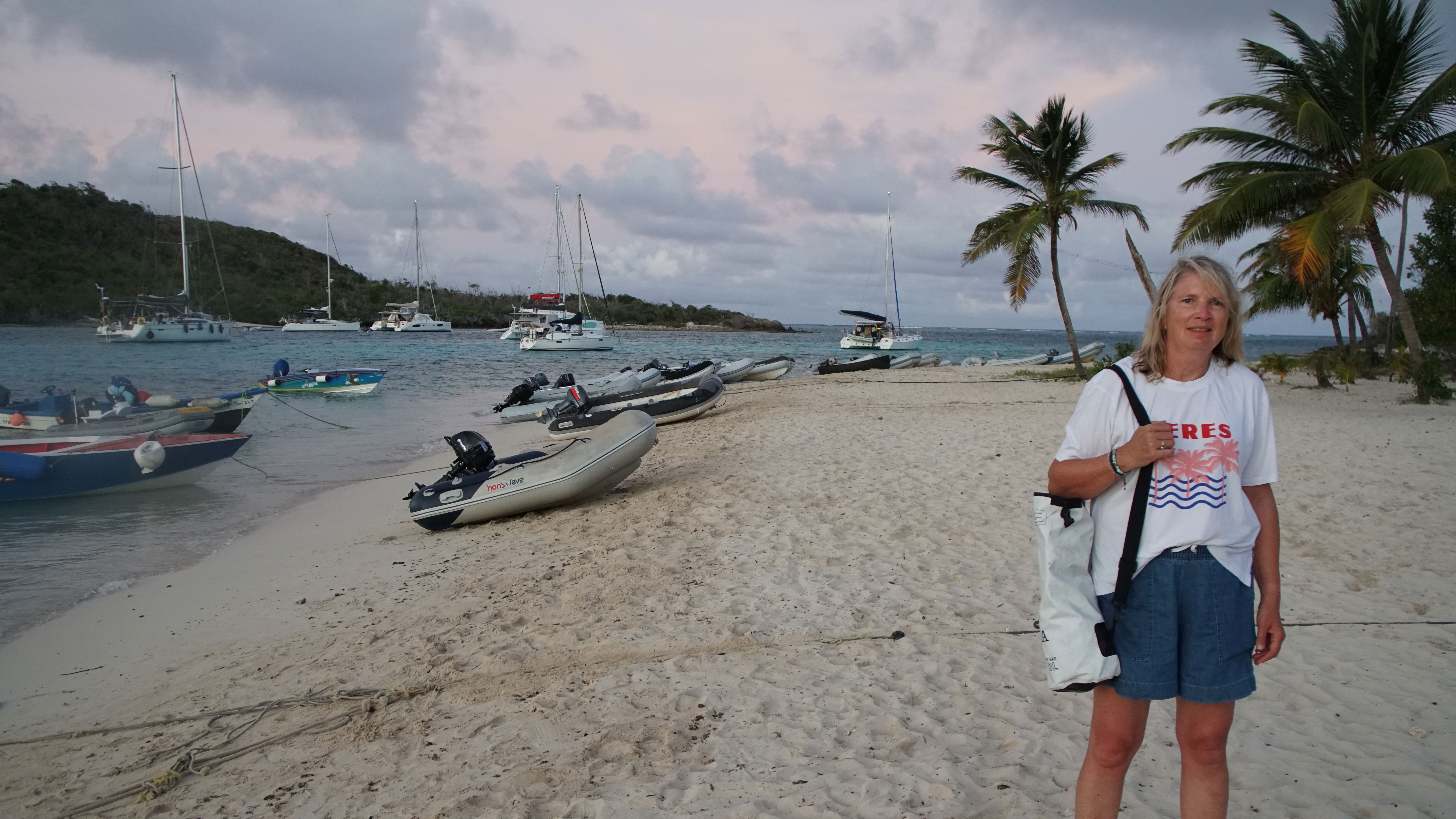 We ended up going to the beach bar that night for another Lobster BBQ which followed along the same lines as the first one we had, delicious. As we were heading back to the boat in the dark, the mooring field was full, and all the mast lights looked like stars. It was so pretty.