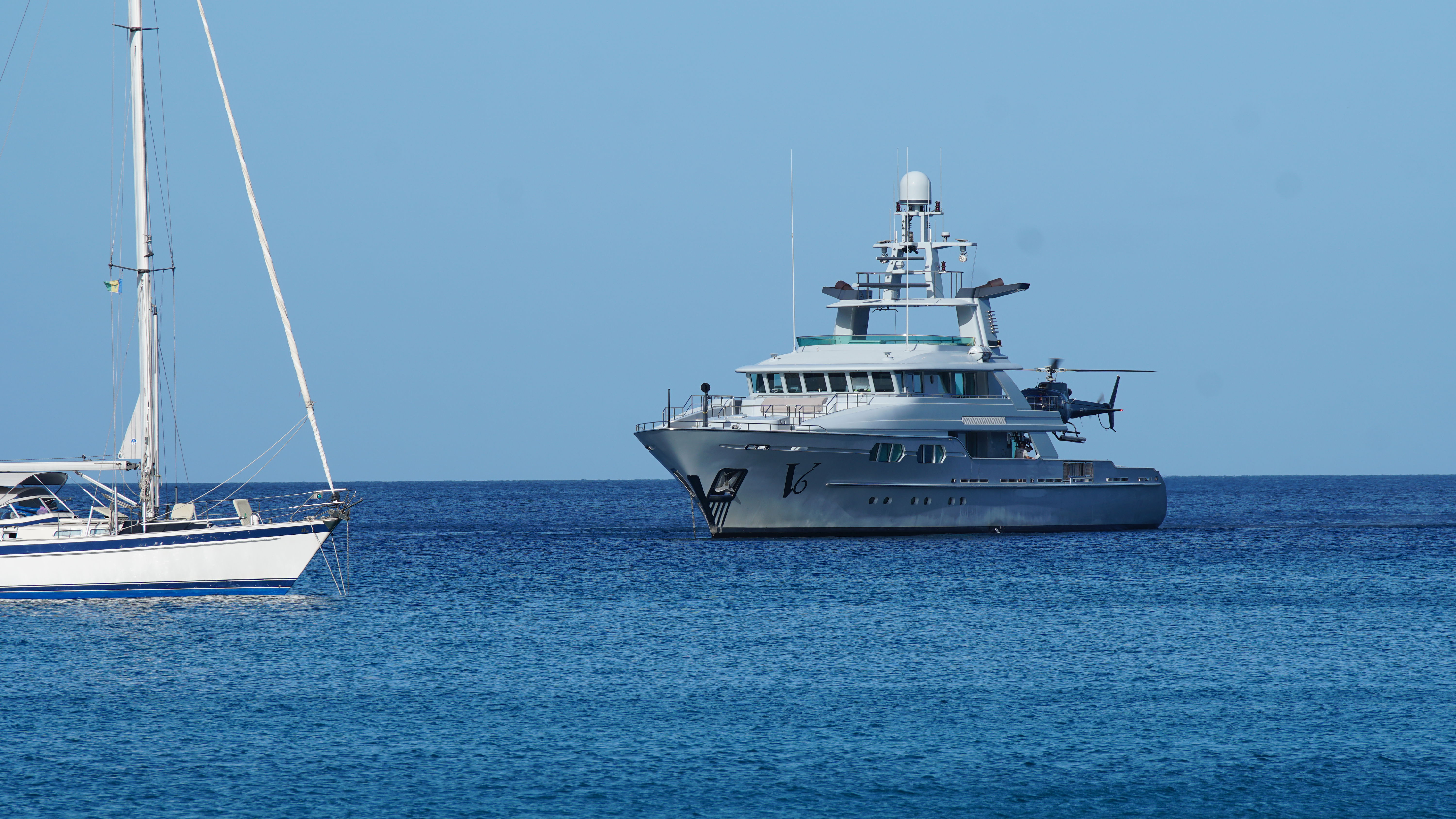 We left the next morning, but not before the super yacht parked on the outskirts of the bay flew his helicopter from the back of his boat. We have a drone; they have a helicopter. Same, same??